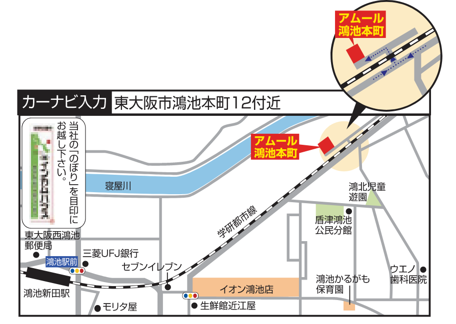 | 交通 | JR学研都市線「鴻池新田」駅より徒歩12分 |