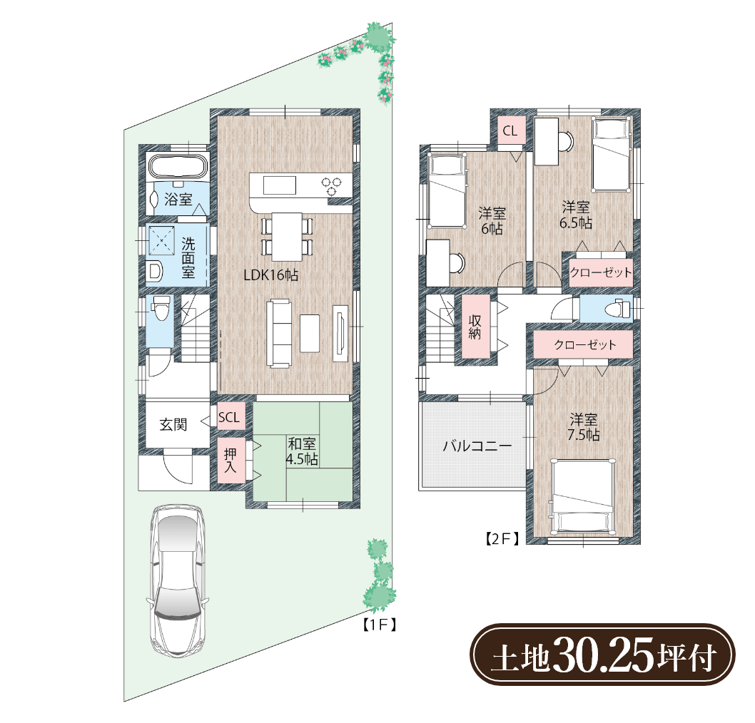 | 敷地面積 | 約100.02㎡~約100.21㎡ |