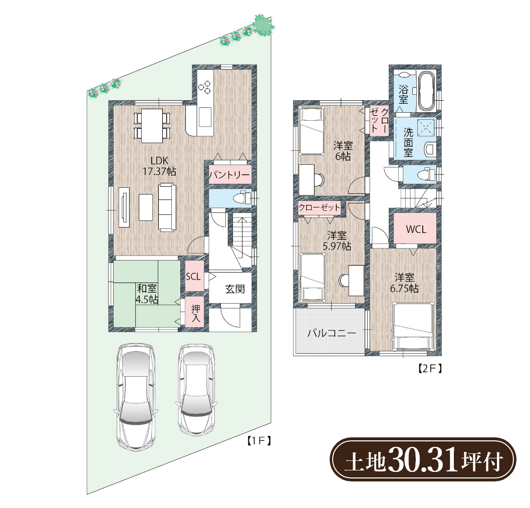 | 敷地面積 | 約100.02㎡~約100.21㎡ |