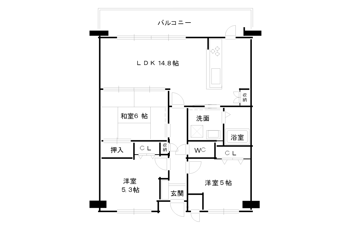 | 建物 | RC造8階建(2階部分) 専有面積:70.18㎡ 3LDK |